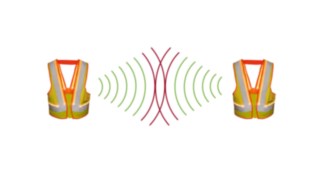 Das Ultrabreitband-Funksignal der Distanzwesten funktioniert besonders zuverlässig und genau. Wird der vorgeschriebene Mindestabstand zwischen zwei Trägern auch nur geringfügig unterschritten, reagieren die Sensoren der Weste. Sie leuchtet, ein akustisches Signal ertönt und der Sensor vibriert.
